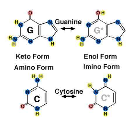Tautomerization involves flipping organic molecules from “keto” forms into “enol” forms, as shown by this diagram from BiochemDen.com: